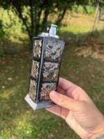 This ceramic stoneware tabletop lighter was made using a vintage slip cast mold, with a gorgeous black and gold glaze combo.