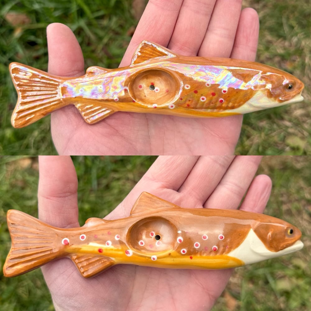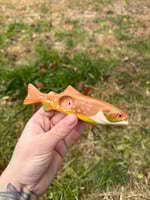 Brand new Trout! These ceramic stoneware trout pieces were slip casted via a mold that I made. They are hand painted with my custom mix of colors, and fully glazed inside and out. They are 6.25" long.