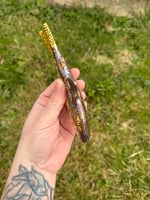 This trout took a 3rd trip to the kiln for a real mother of pearl over glaze to give that irridedcent look.