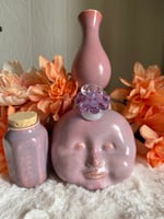 This doll face piece was made from vintage slip cast molds 😃 Love love love the colors! Has glass components. Glazed inside and out easy to clean.
