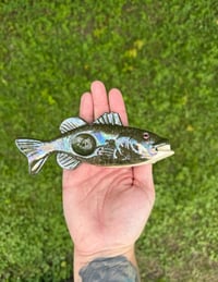 These bass fish were hand painted and have a real mother of pearl glaze for that iridescent look! Each bass is fully glazed inside and out (the pattern only on one side).