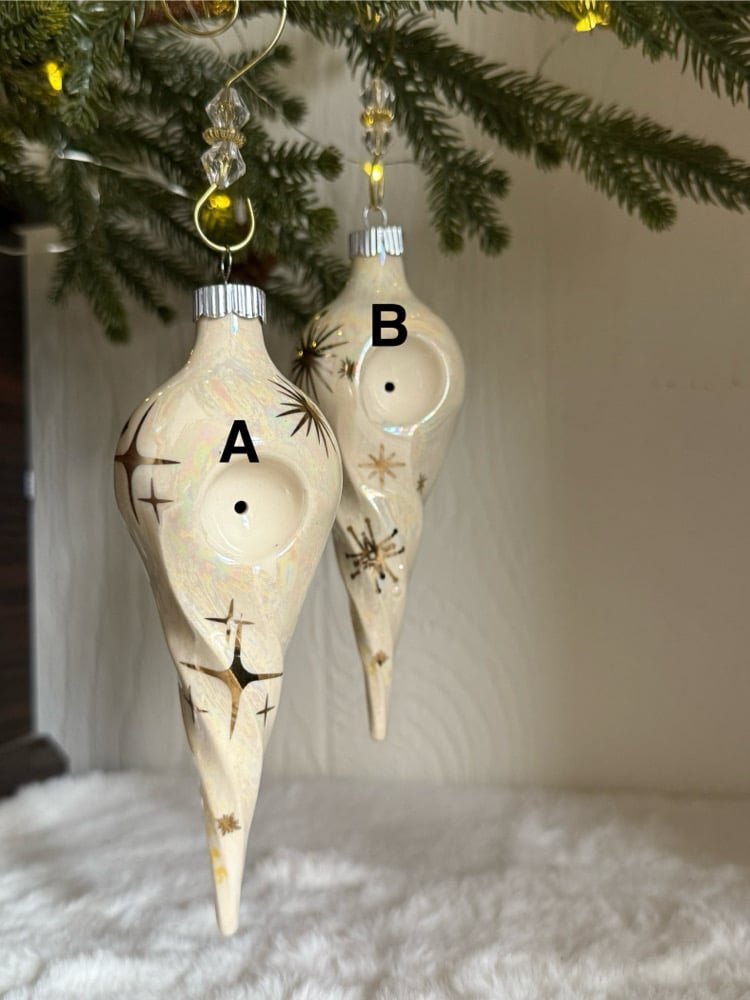 Classic Christmas ornaments, or are they? Both for function and decor! These ceramic stoneware ornaments hang beautiful on your tree, they also sit beautifully on your table for your Christmas spices.