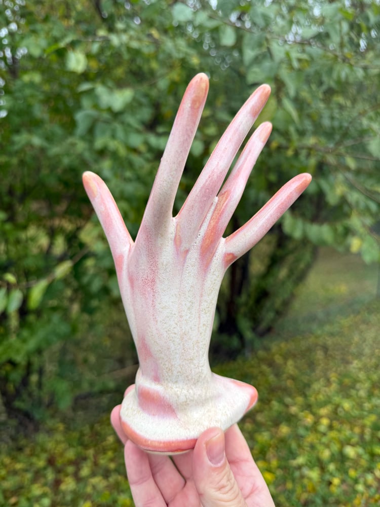 I’ve been collecting these vintage hands for years, and when I found this mold I had to jump on it and make my own! They’re great decor, and excellent as ring holders. I love the movement they have.