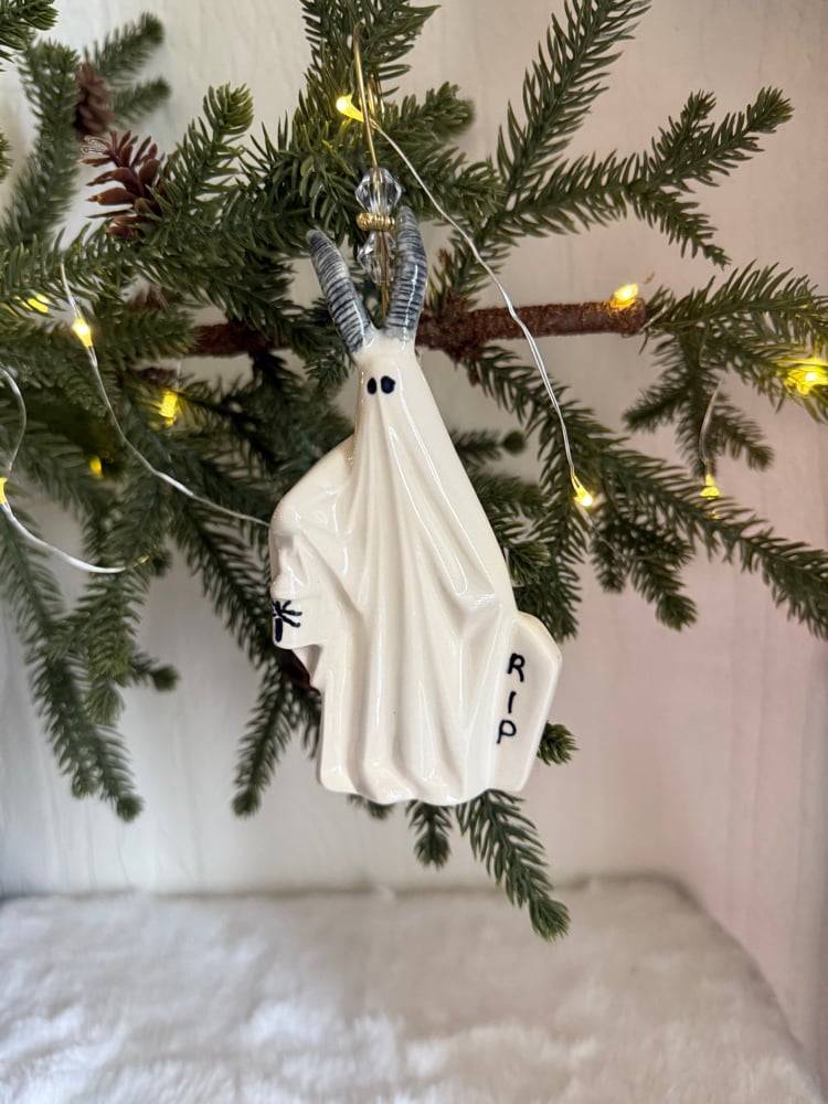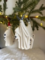 These ghosts were made using a vintage mold, with hand sculpted Krampus horns and Santa hat. Hand painted. Can stand or hang.