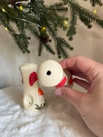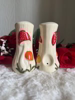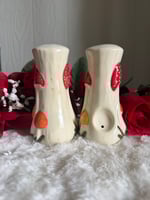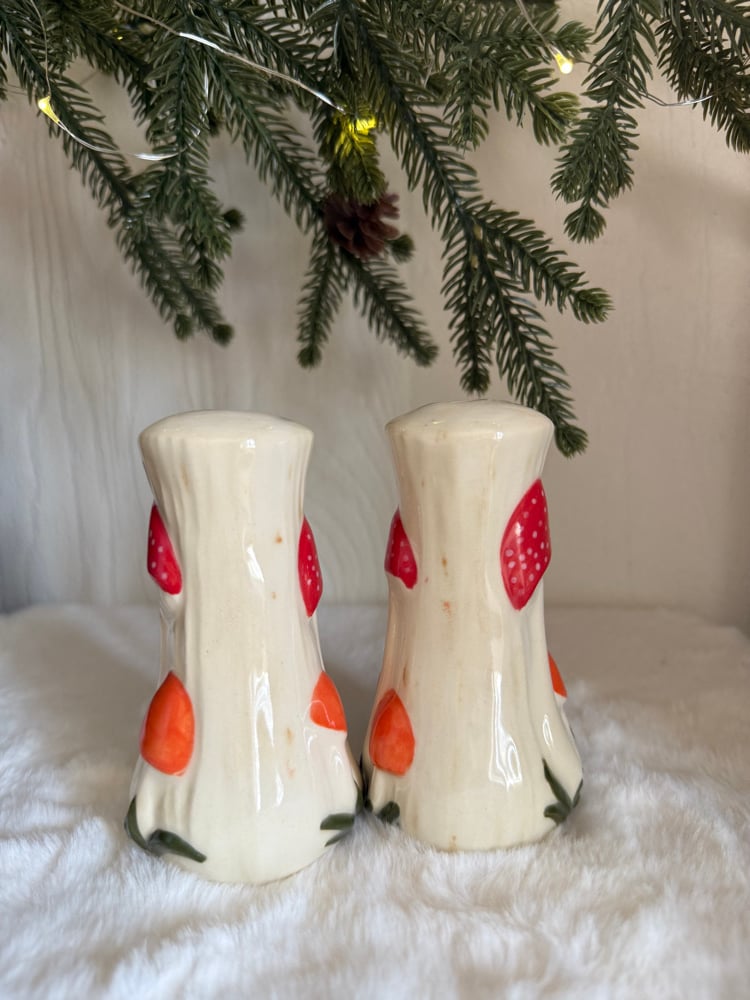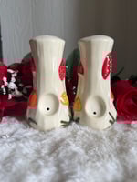 These vases were slip casted with a vintage Arnels mushroom salt shaker mold and has a new purpose! Hand painted and glazed inside and out