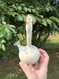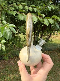 This rainbow trout water vase is made of ceramic stoneware with a hand painted trout and glass components. Easy to clean