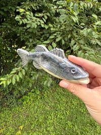 .These bass fish were hand painted and have a real mother of pearl glaze for that iridescent look! Each bass is fully glazed inside and out (the pattern only on one side).