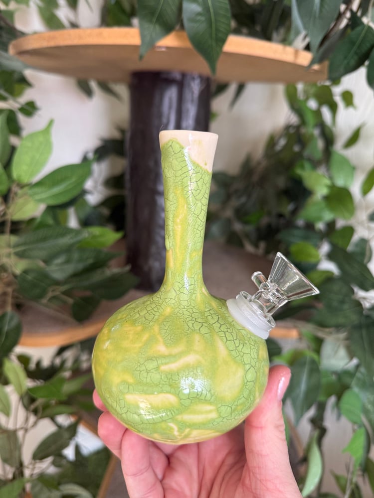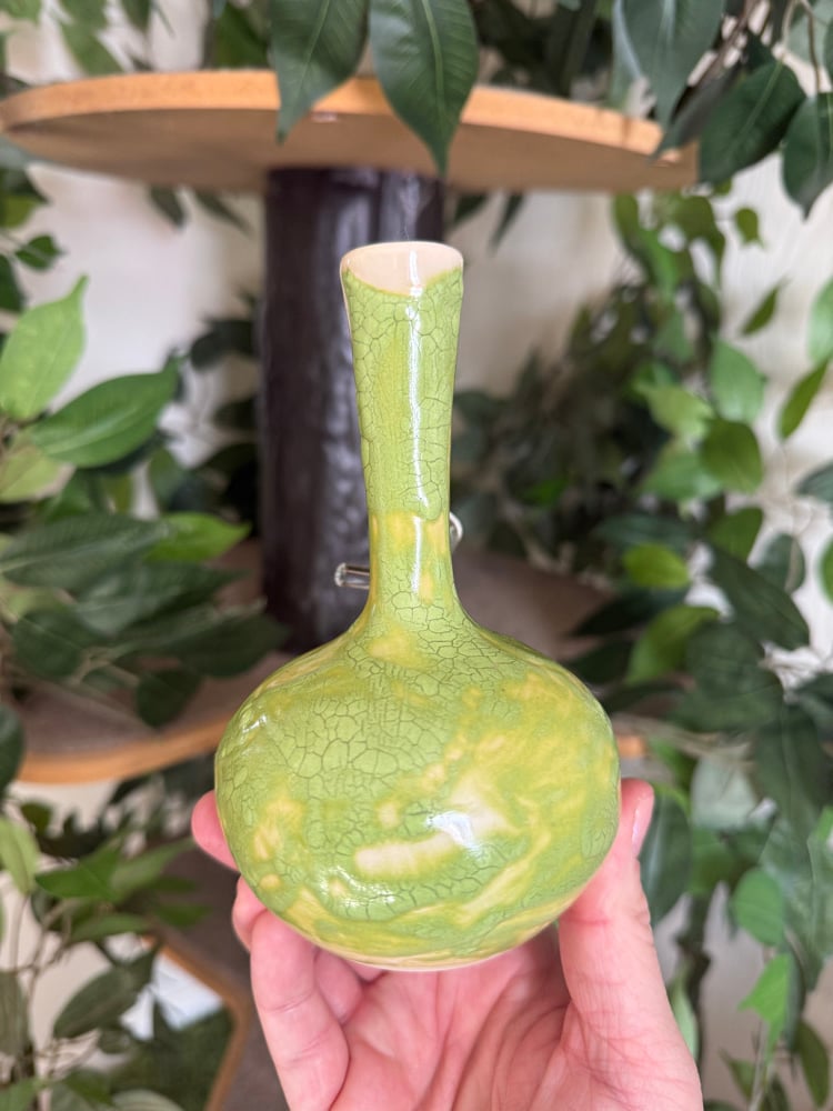 This water vase was a fun experiment, a slime green glaze effect that crawled and bubbled!