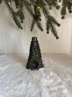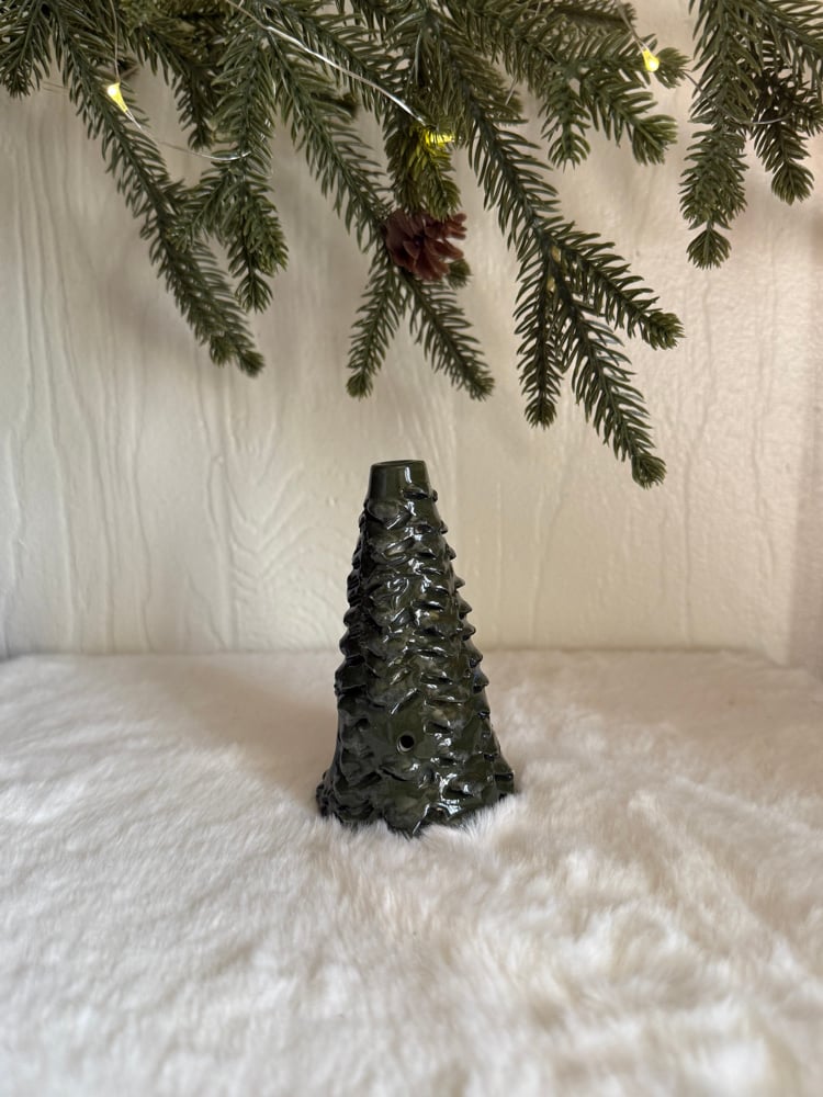 Wheel thrown mini vase, carved to look like a tree. Glazed inside and out. “ tall